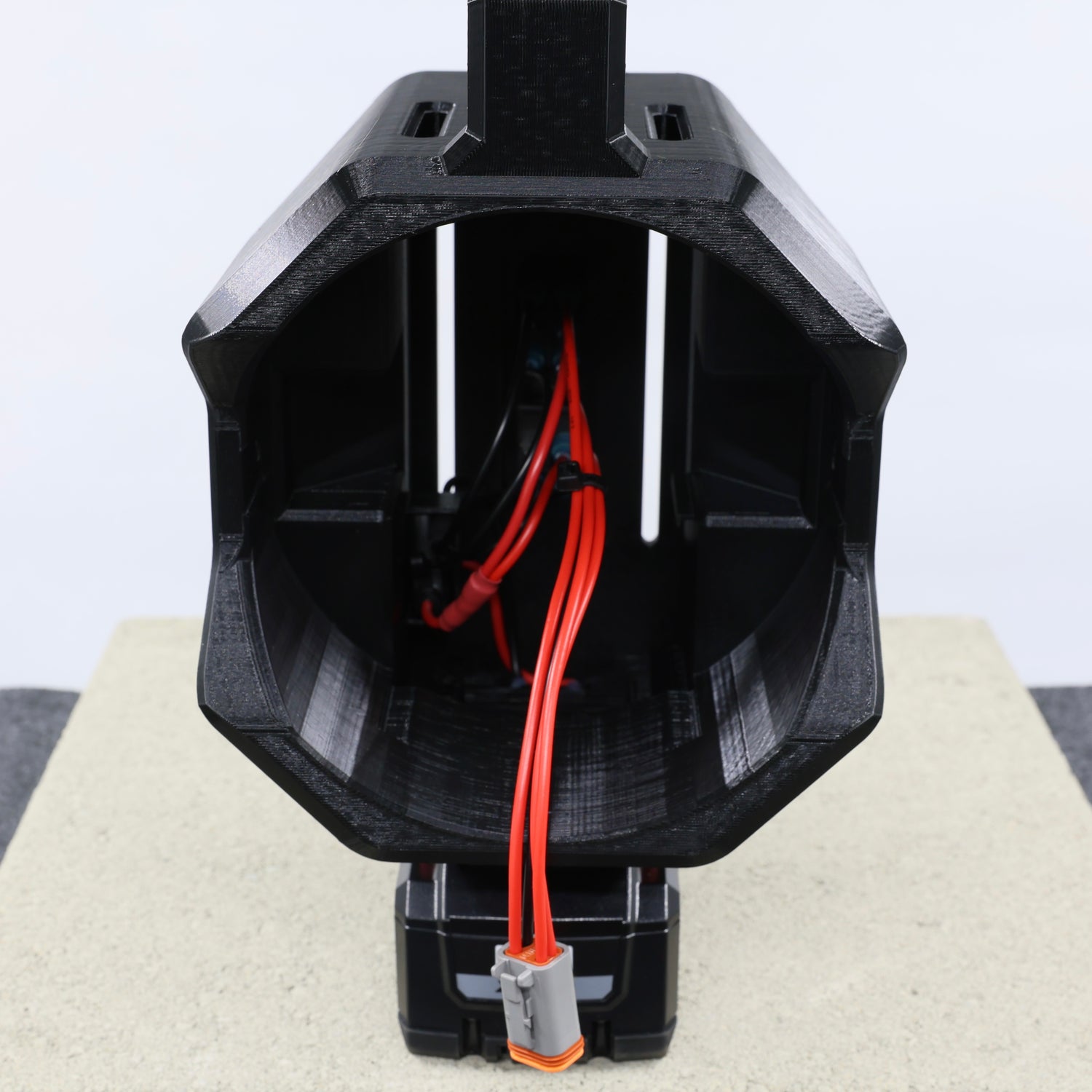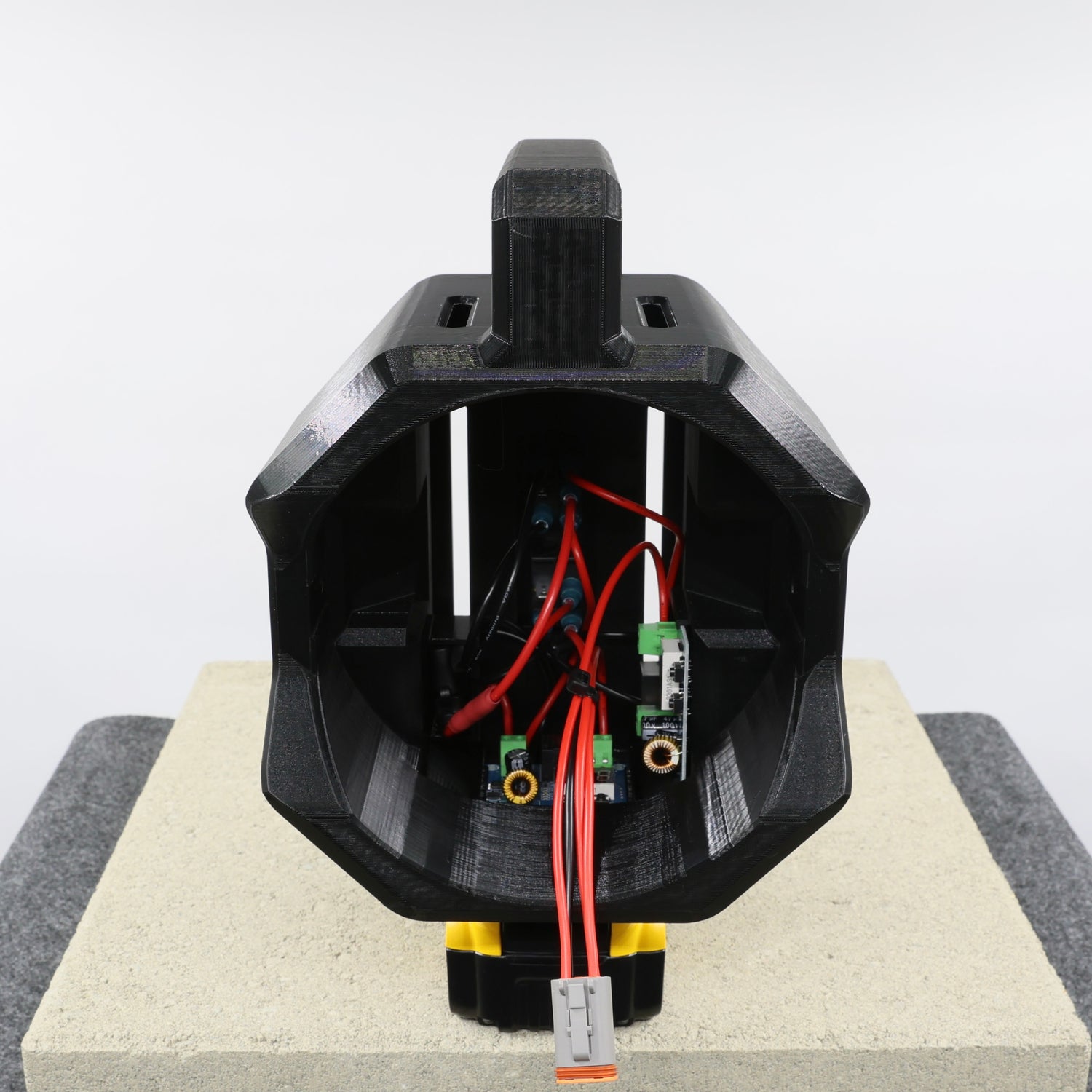 This housing is HUGE, not like kind of big, I mean giant. It is a massive spot light with a huge handle to hold it. I basically took our squadron DeWalt 20V flashlight and put it on huge amounts of steroids for a long period of time, and this is the result.